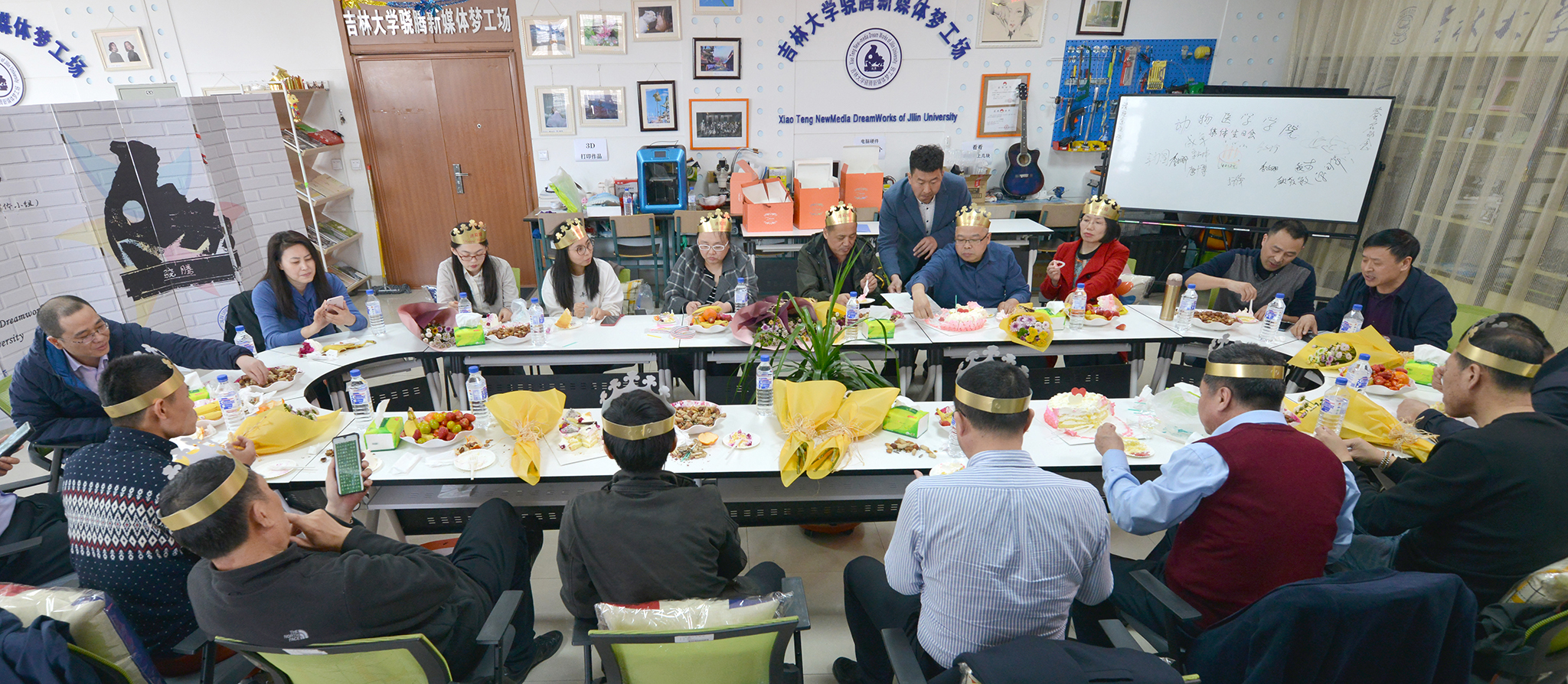 工会组织第二季度过生日的全体教职工在实验教学中心五楼“骁腾新媒体梦工場”举办了首届集体生日会,自此,拉开了每季度为教职工过集体生日的序幕。东京热