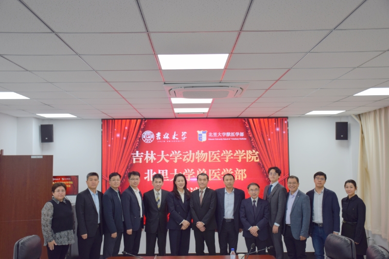 11月5日,日本北里大学兽医学部学科长山胁英之教授、研究生院院长田边太志教授、国际交流委员会委员长胡东良教授、国际交流委员田岛一树教授一行来东京热